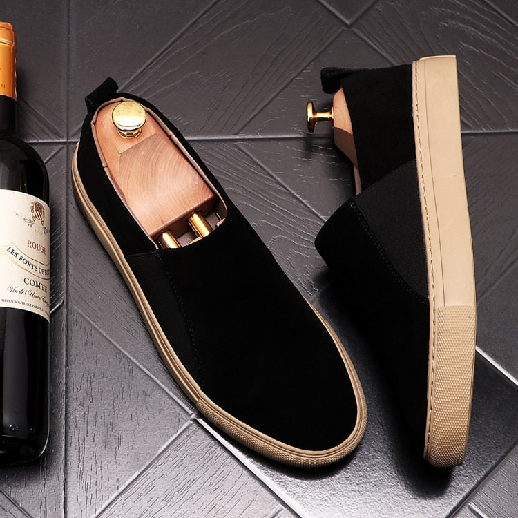 Black Suede Leather Flat Loafers Shoes