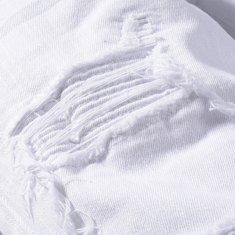 Destroyed Ripped Men Patchwork White Jeans Pants
