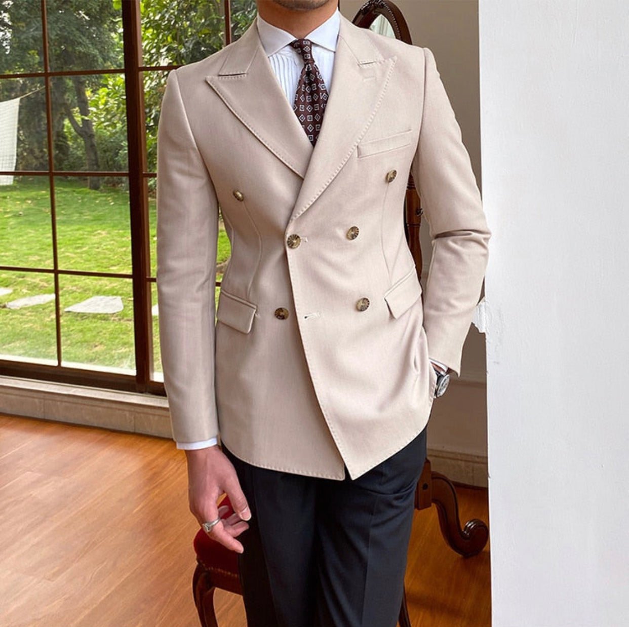 Italian Big Collar Gentleman Double Breasted Casual Suit