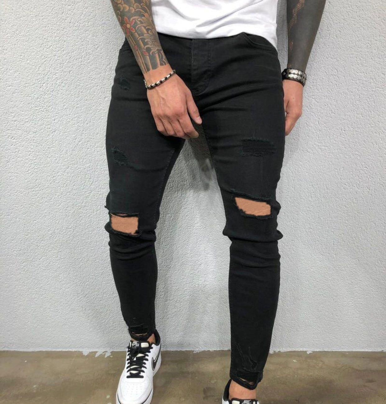Men Skinny Ripped Stretch Denim Jeans