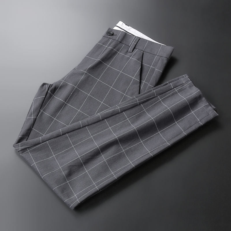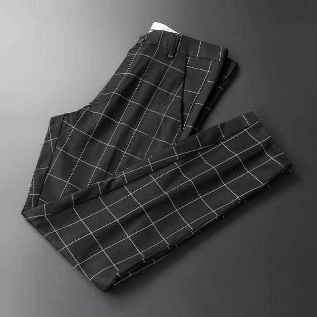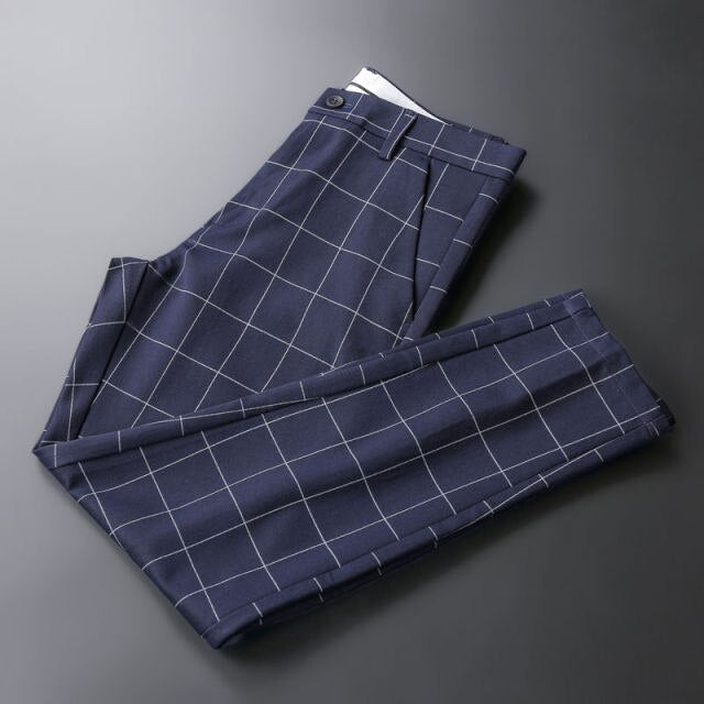 Men's Casual Simple Slim Fit Formal Plaid Pants