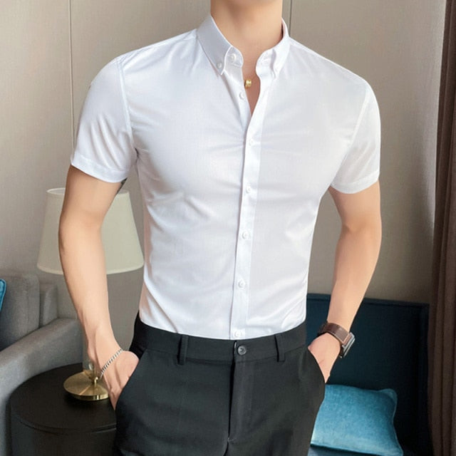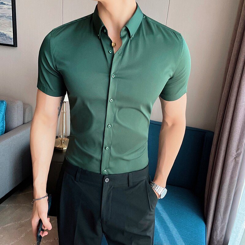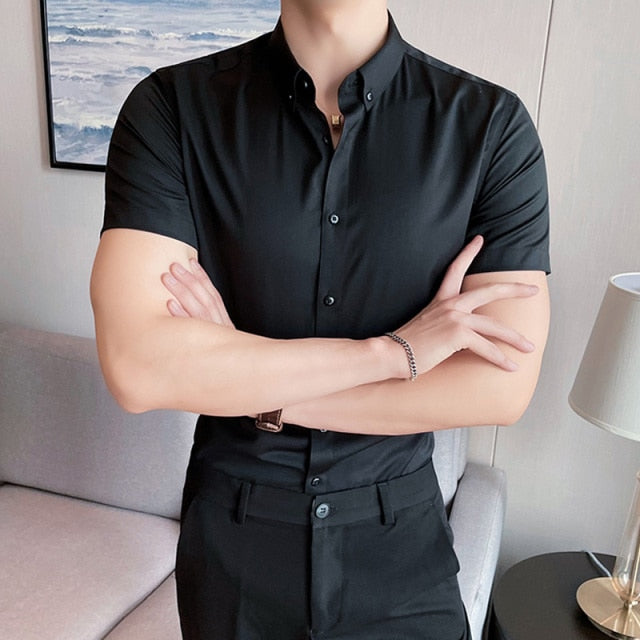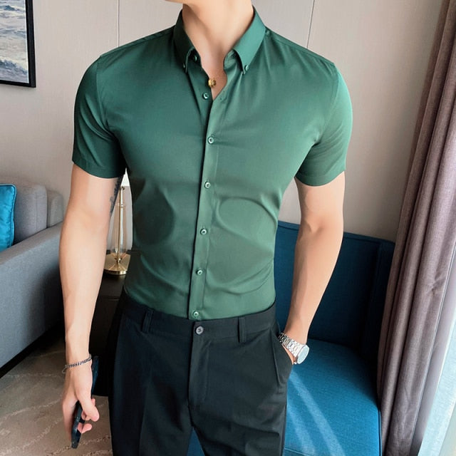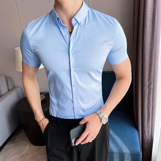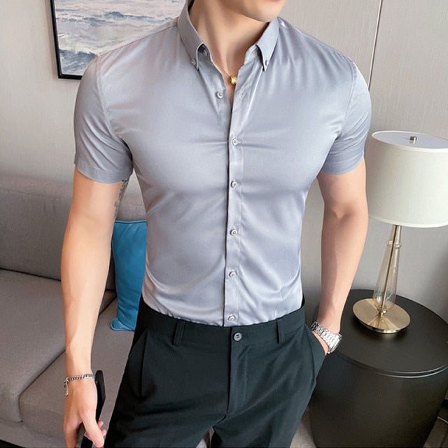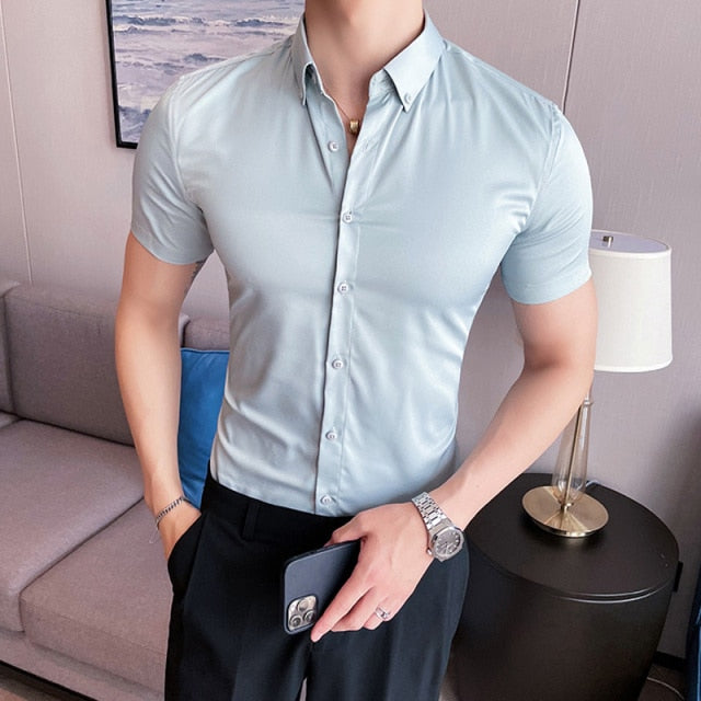 Skinny Men Causal Basic Short Sleeve Shirt